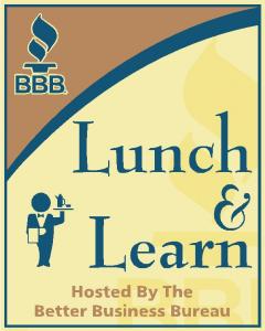 The quarterly event begins with networking at 11:00AM, a delicious lunch promptly served at 11:20AM and the training will conclude at 1:00PM. “Lunch & Learn” is sponsored by the Better Business Bureau and will provide an excellent opportunity of business networking and professional development.